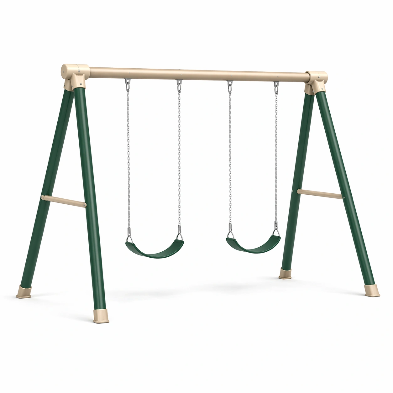 Der Rahmen besteht aus pulverbeschichtetem Stahl, was langlebig und wetterbeständig ist. Die Sitze sind aus strapazierfähigem Polyethylen-Kunststoff gefertigt. Die Ketten bestehen aus verzinktem Stahl, um Rostbildung zu vermeiden.